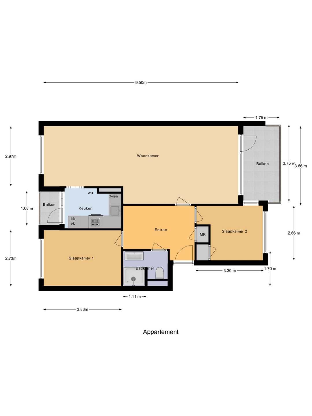 Wordt dit appartement van jou? Dat kan als je op zoek bent naar een driekamerappartement met een nieuwe keuken. Gelegen op de eerste verdieping. Het appartement heeft een nette gesloten keuken vanuit de woonkamer te bereiken met diverse inbouwapparatuur. Het appartement heeft twee balkons. Het grote balkon aan de woonkamerzijde is gelegen op het westen. Via de hal kom je in de lichte woonkamer. De woonkamer is voorzien van een laminaatvloer. De badkamer is vanuit de hal te betreden. Deze heeft een zwevend toilet, douchegedeelte en is voorzien van een wastafelmeubel. Dit appartement heeft twee slaapkamers en op de begane grond is er een praktische (fietsen)berging.