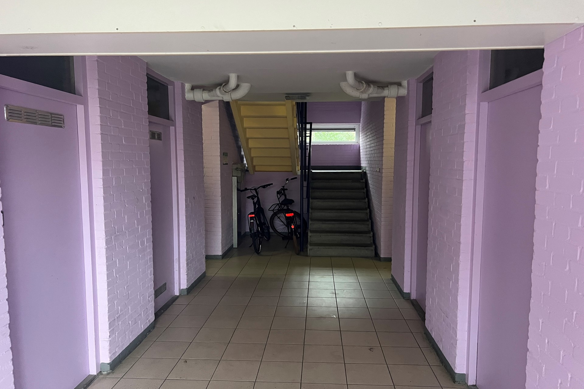Op de begane grond kom je via de hoofdentree met beltableau met deurtelefoon in de gemeenschappelijke hal met de brievenbussen en de toegang tot de fietsenbergingen.