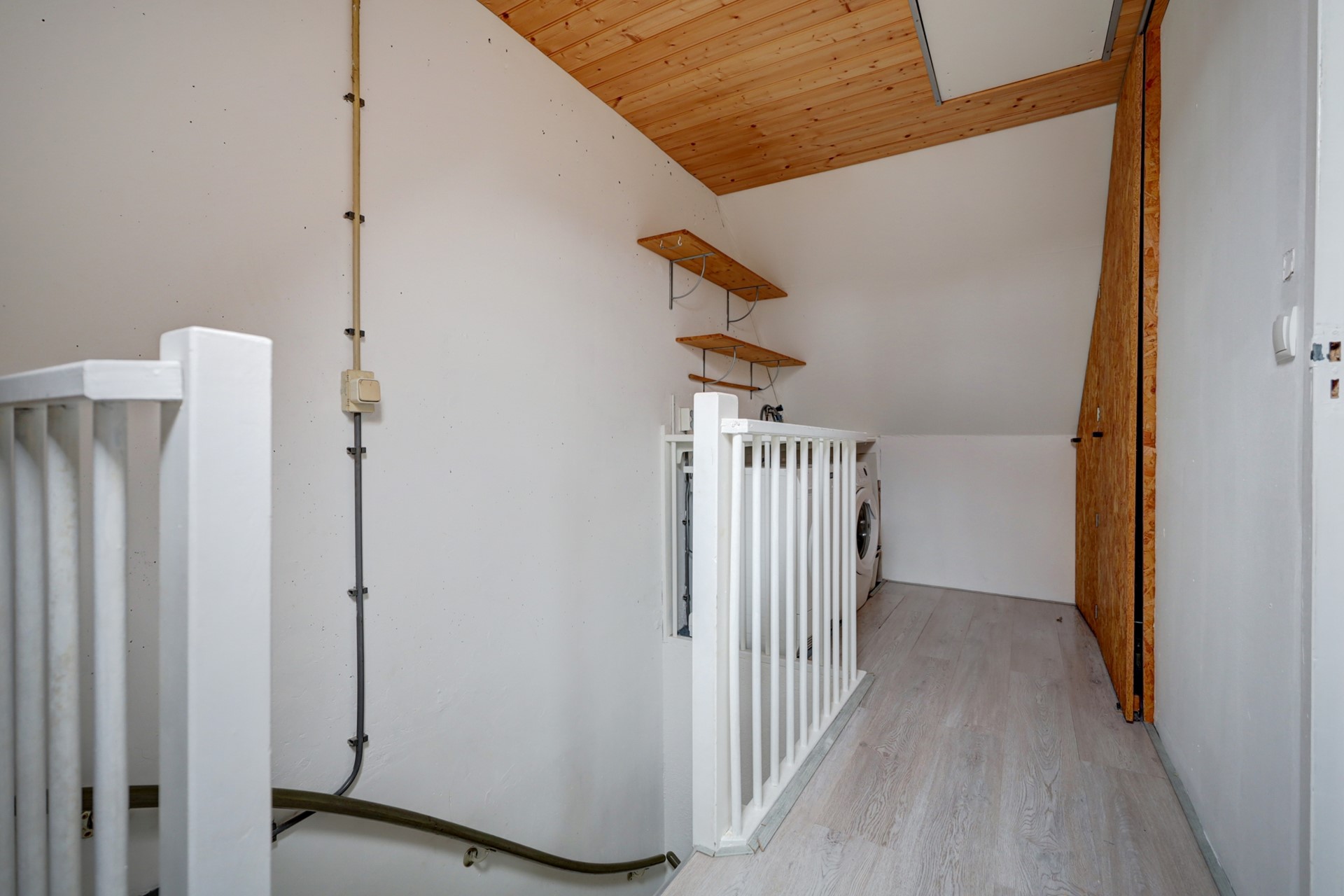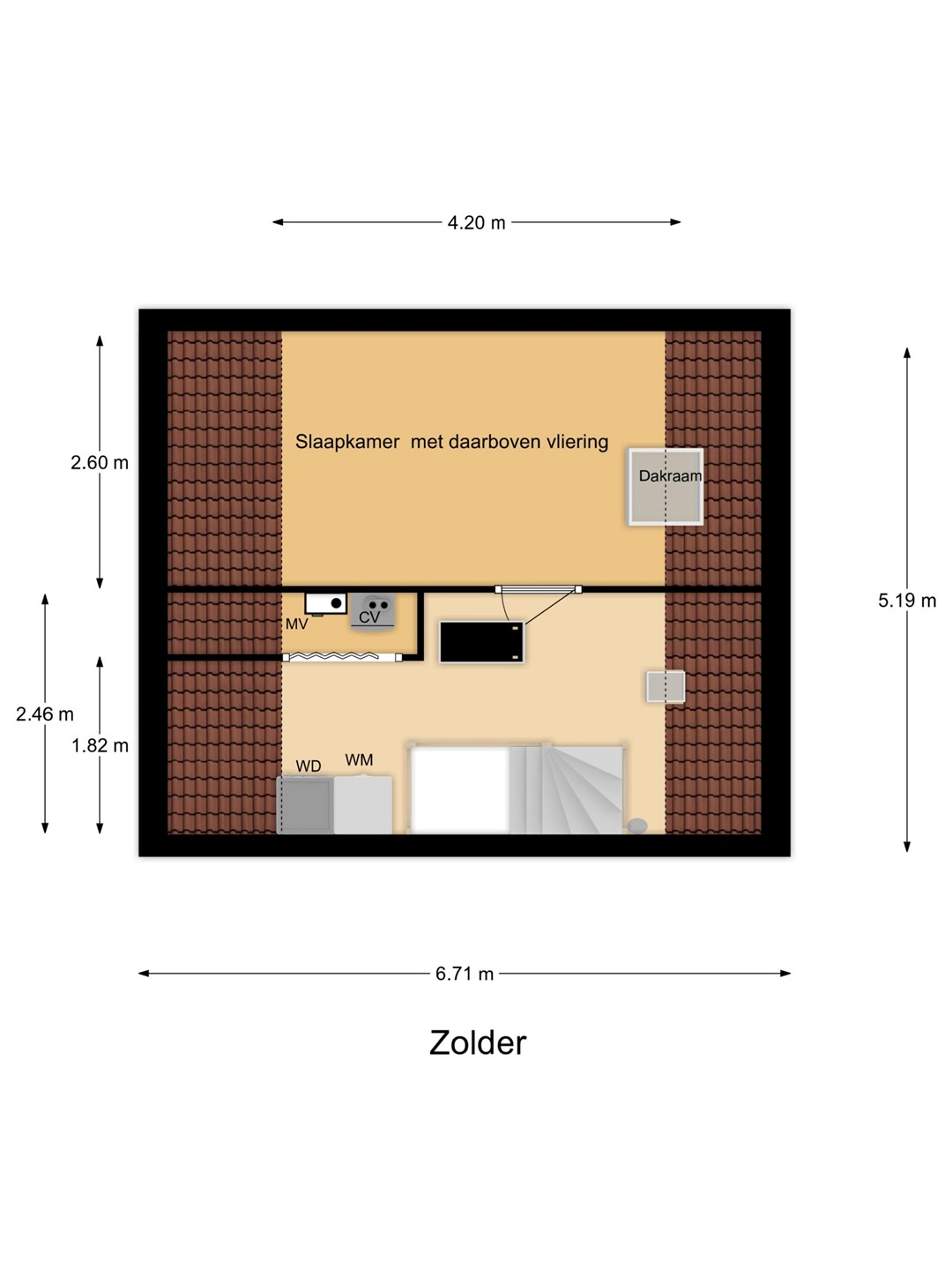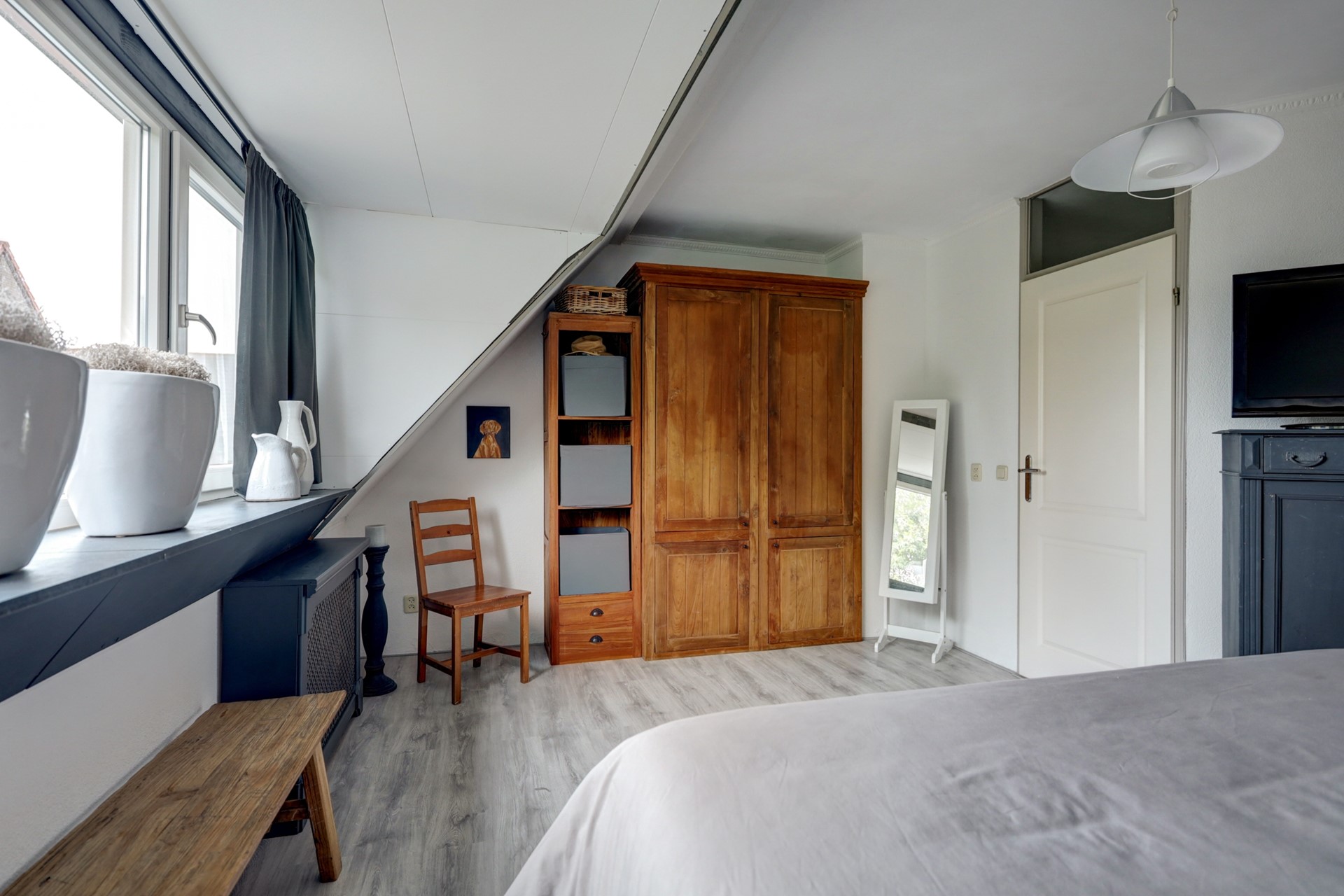 Tweede verdieping: voorzolder met witgoedaansluitingen, CV-opstelling, MV-unit en vlizotrap naar de bergzolder; slaapkamer voorzien van een dakraam en berging achter de knieschotten.