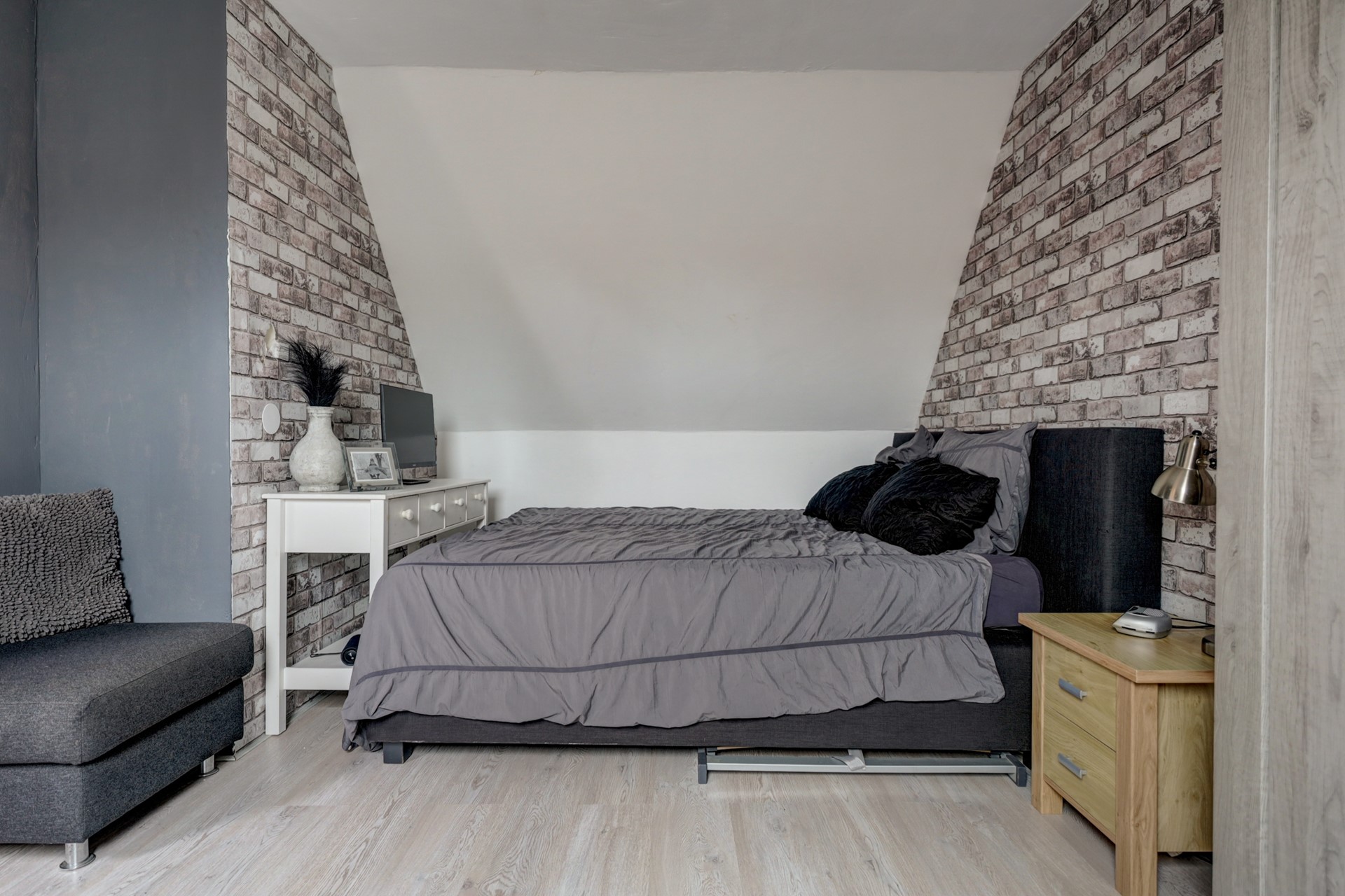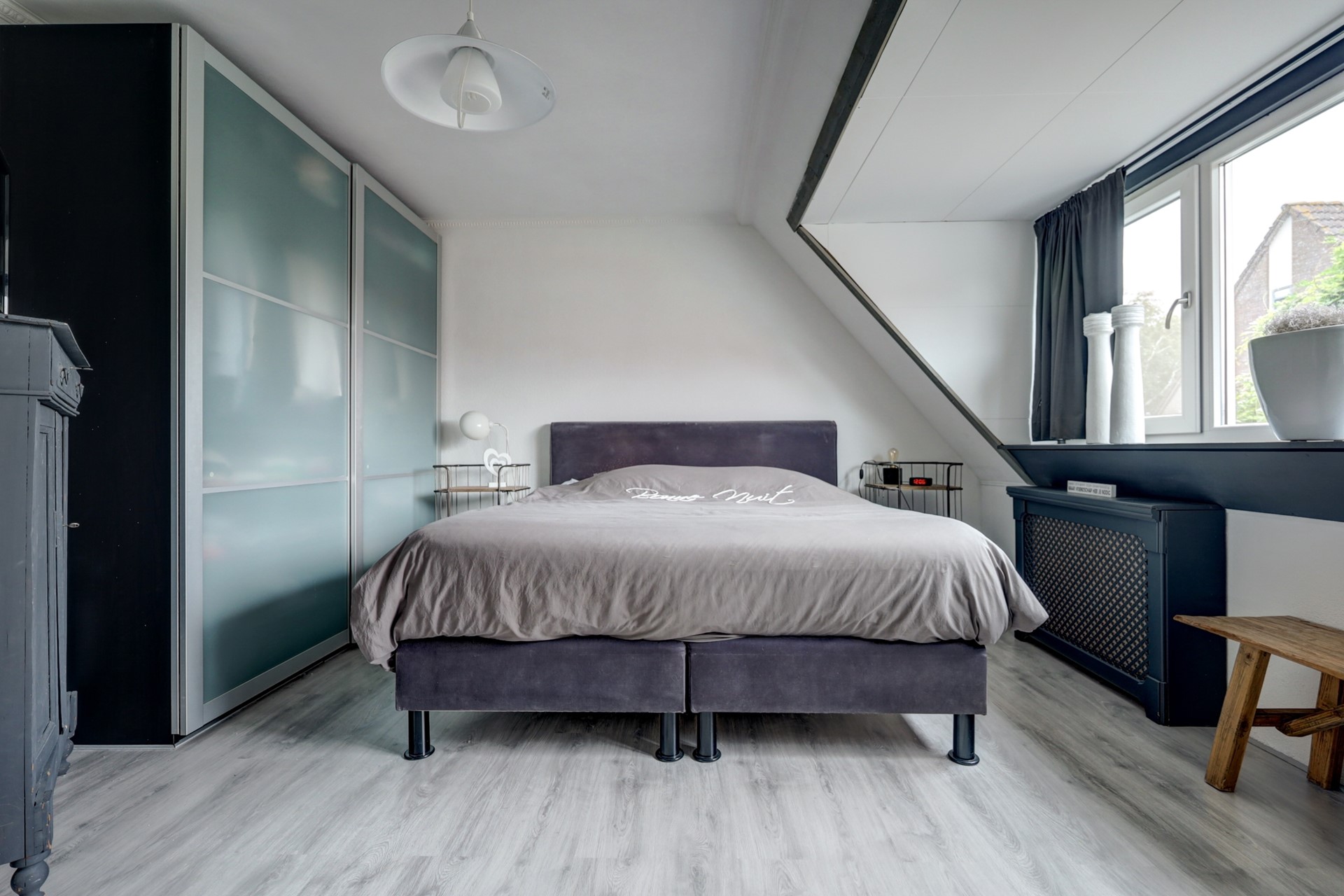 De grootste slaapkamer kan indien gewenst terug gebracht worden naar de oorspronkelijke indeling met twee slaapkamers.