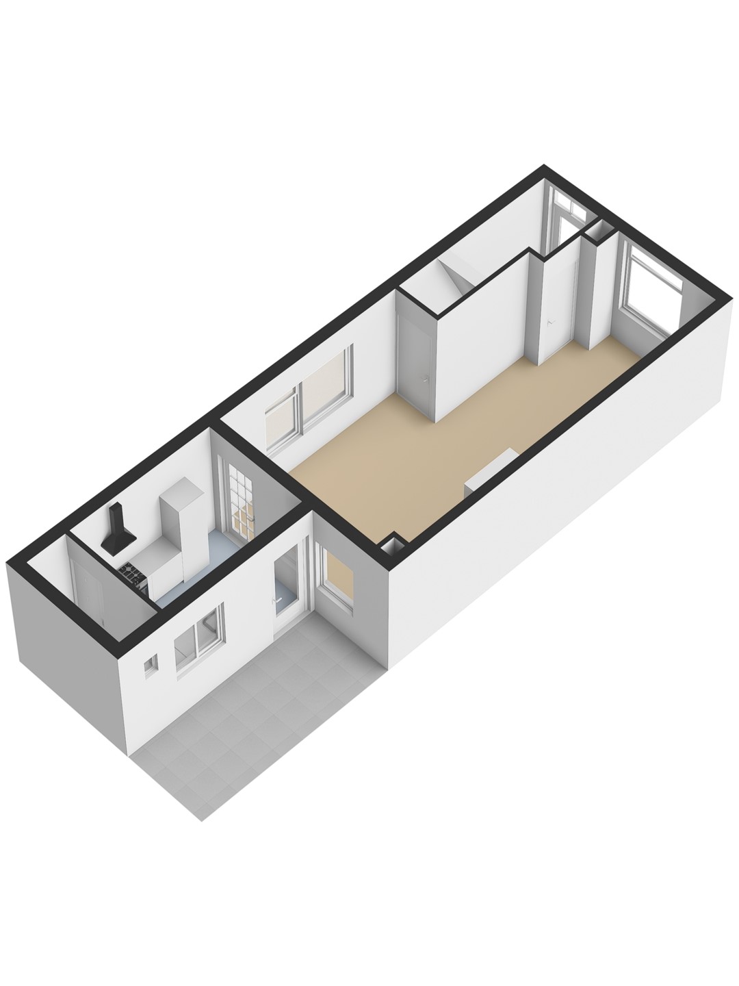 Indeling; Entree via voordeur. Hier bevindt zich de meterkast en de trapopgang richting de eerste verdieping. Tevens bevindt zich hier de deur richting de woonkamer en keuken.