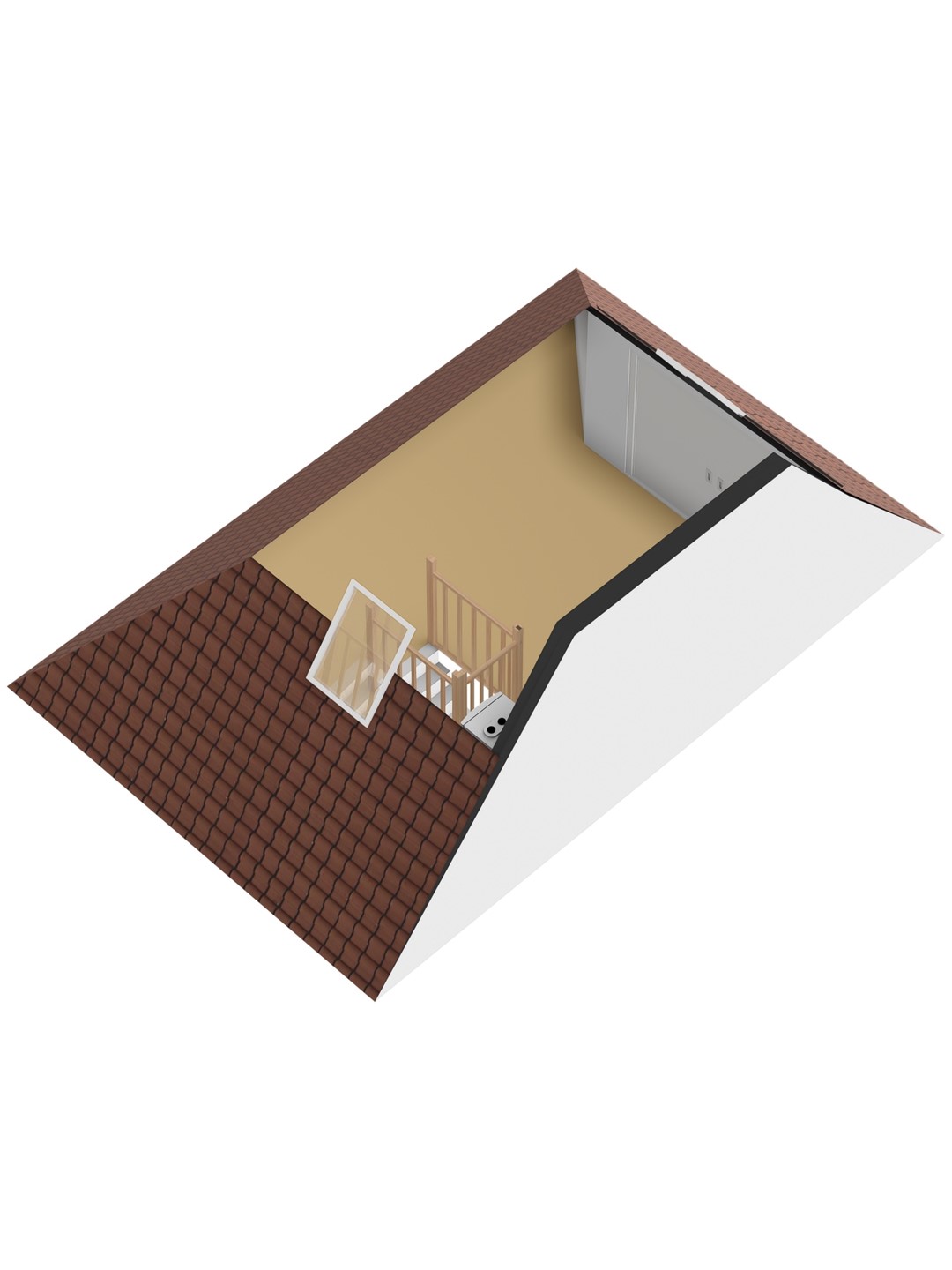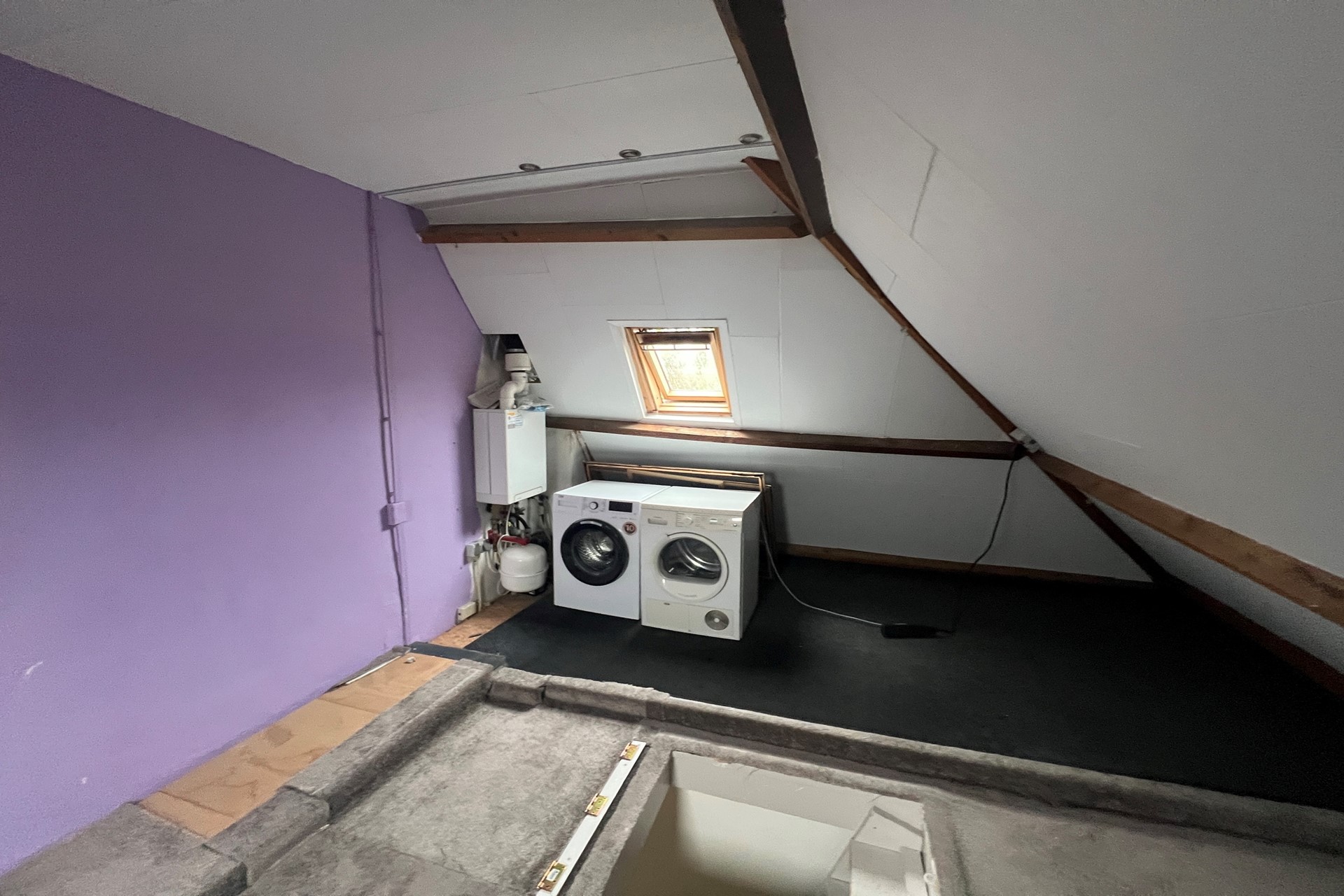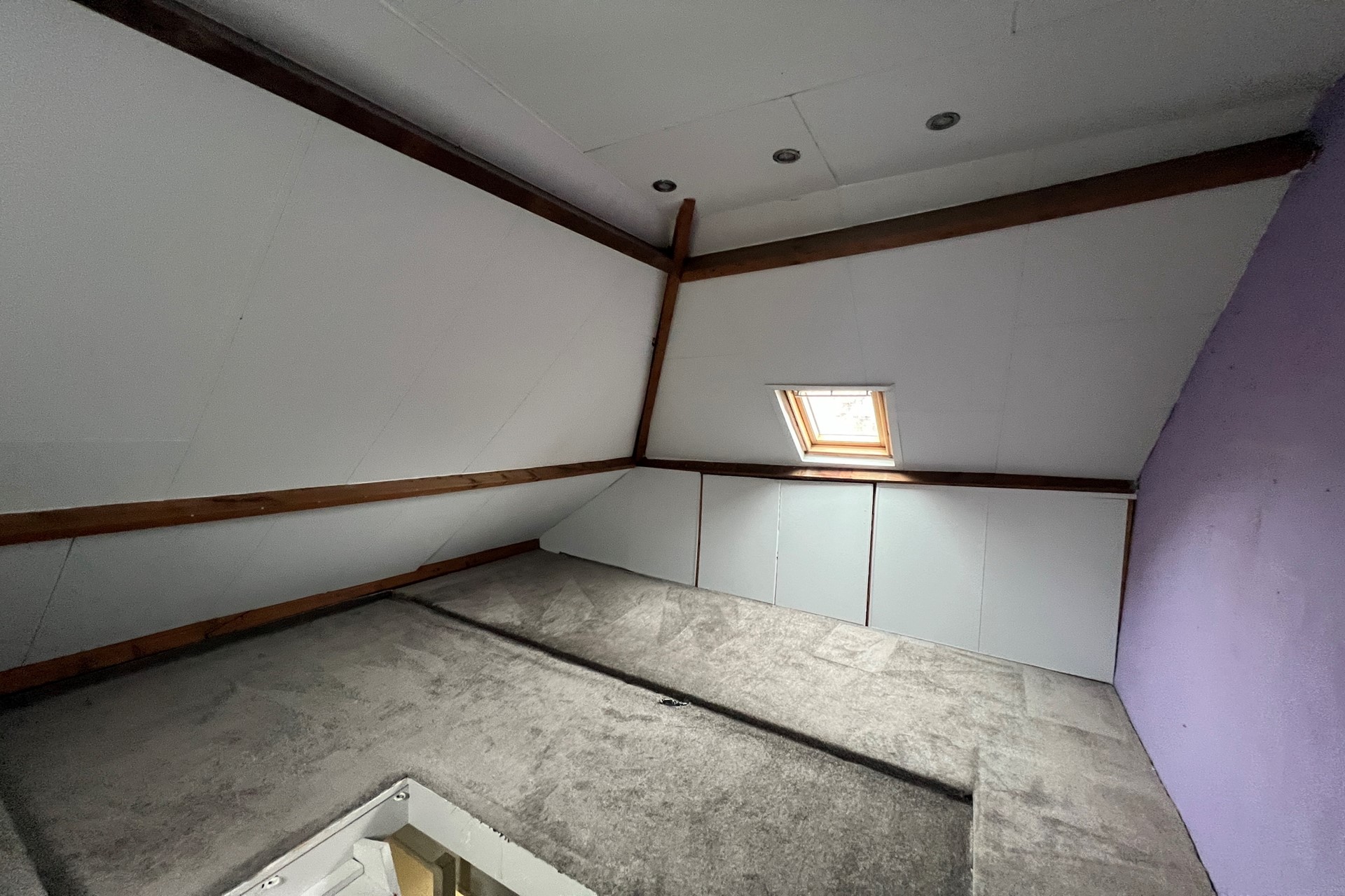 De derde slaapkamer bevindt zich op de zolder en is voorzien van diverse schotten die dienen als bergruimte. De zolder is tevens voorzien van de aansluitingen voor wasmachine en wasdroger. Vloer: vloerbedekking (grijs). : Wanden gips spuitwerk (wit).Plafond : gips spuitwerk (wit). Opstelling combi-ketel. Inbouwspots.