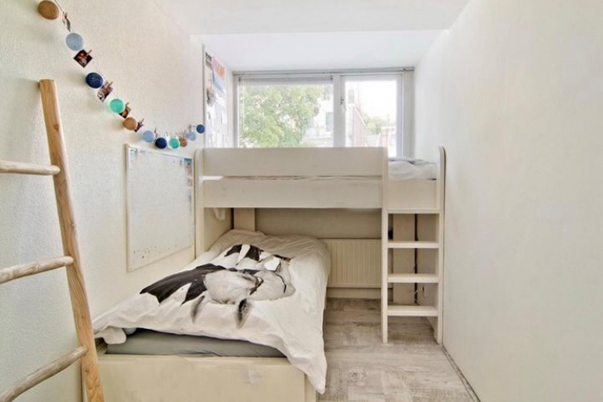 De tweede slaapkamer bevindt zich aan de achterzijde van de woning. : Vloer laminaat (lichte kleurstelling).