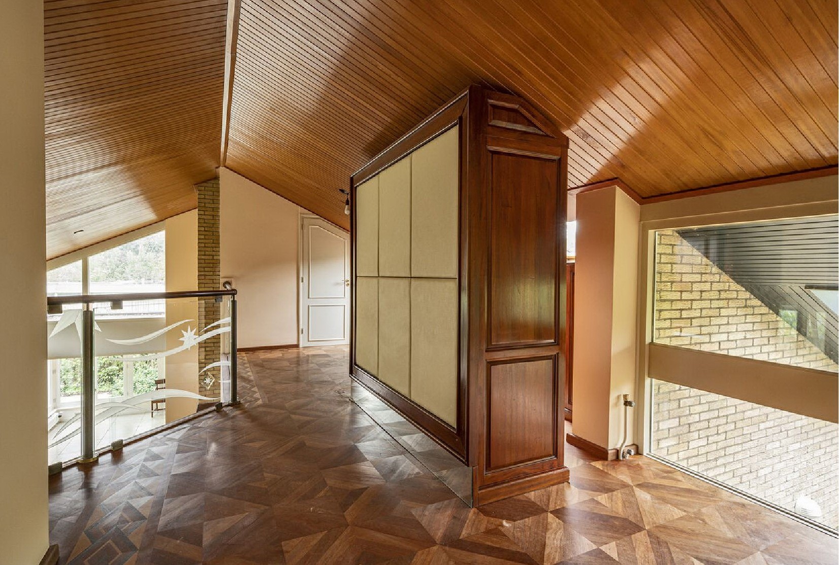 Via de trap in de hal komt u op de eerste verdieping. Ruime overloop met toegang tot de fraaie vide; bergruimte, 3 royale slaapkamers waarvan één met