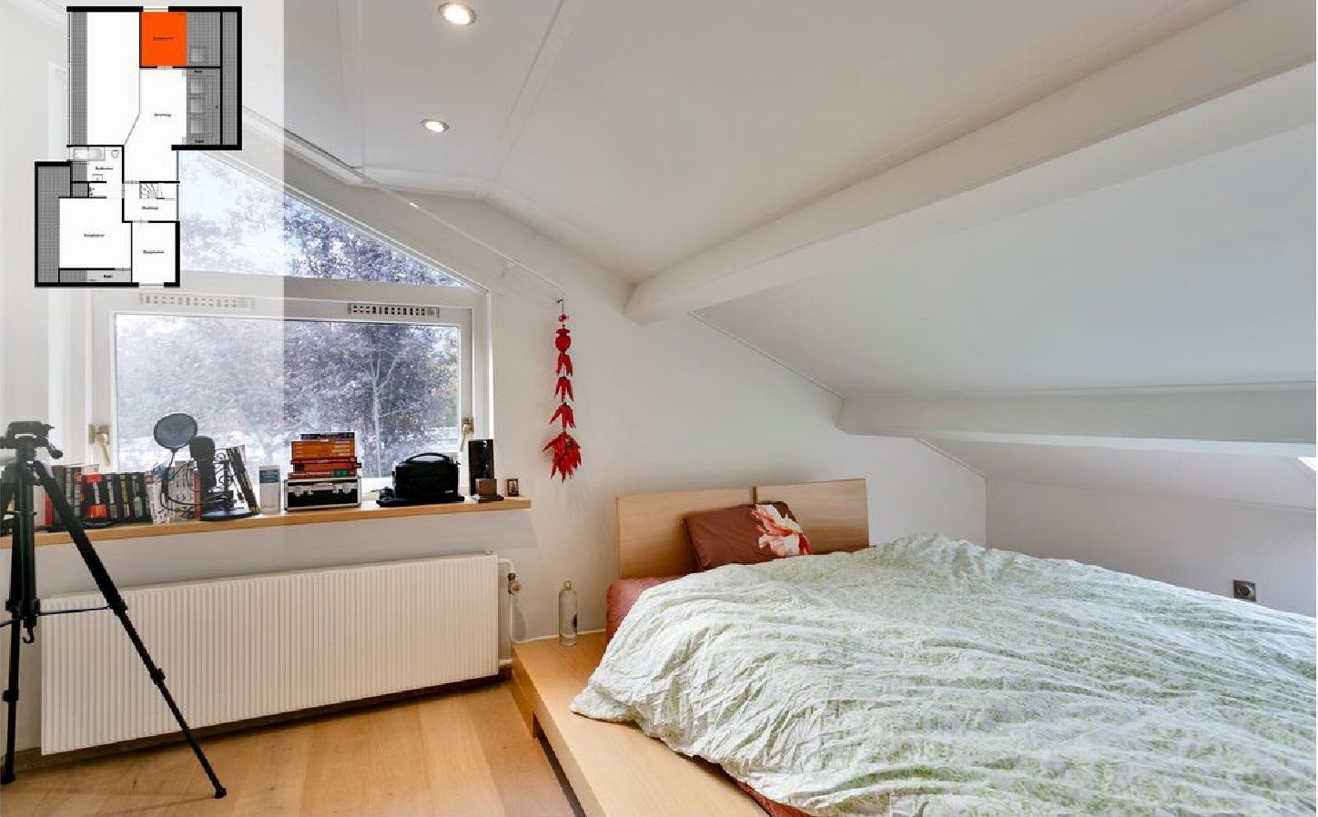 Slaapkamer 2: ca 17 m² met vaste kast, dakkapel en staat in verbinding met de badkamer