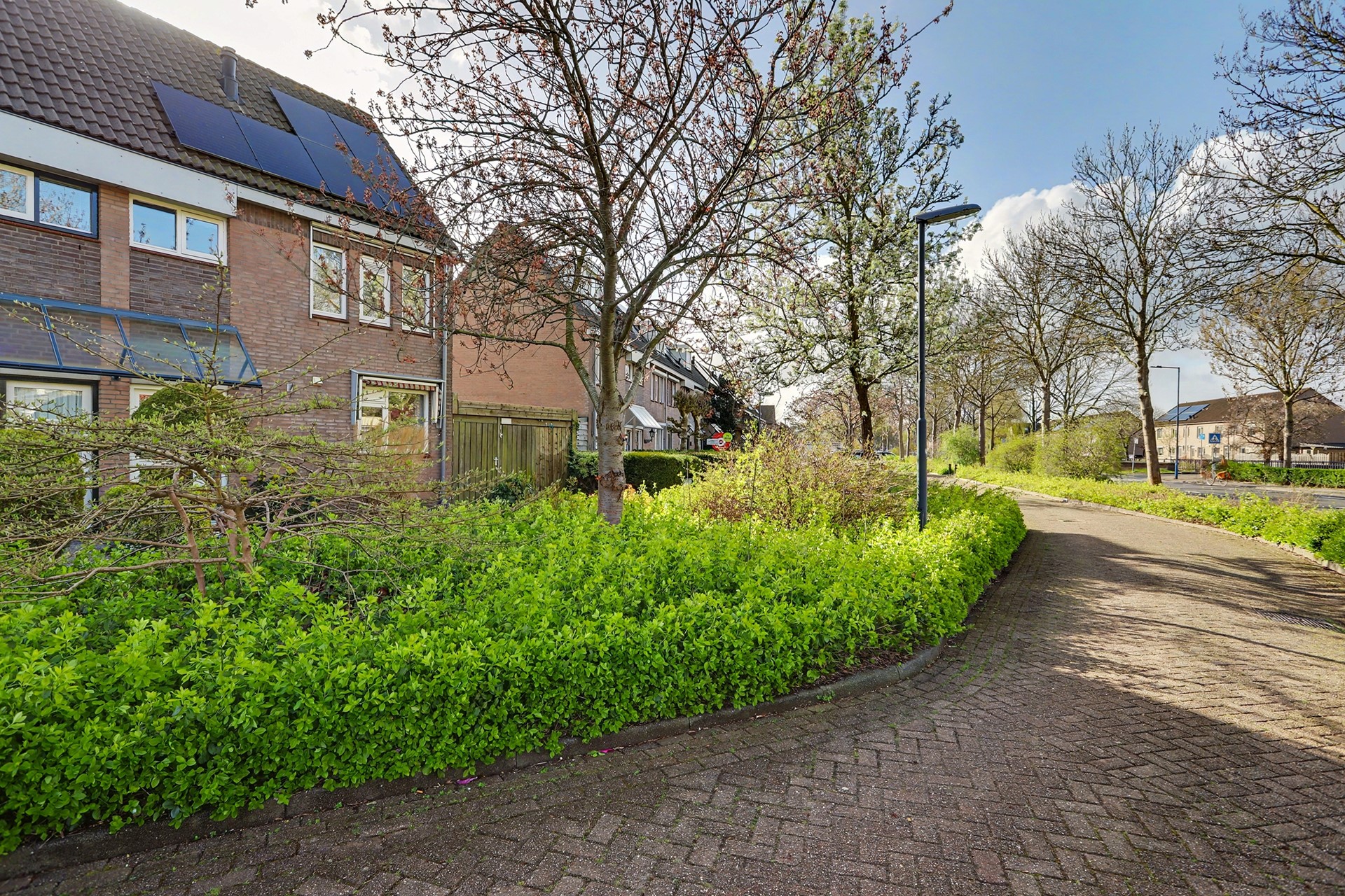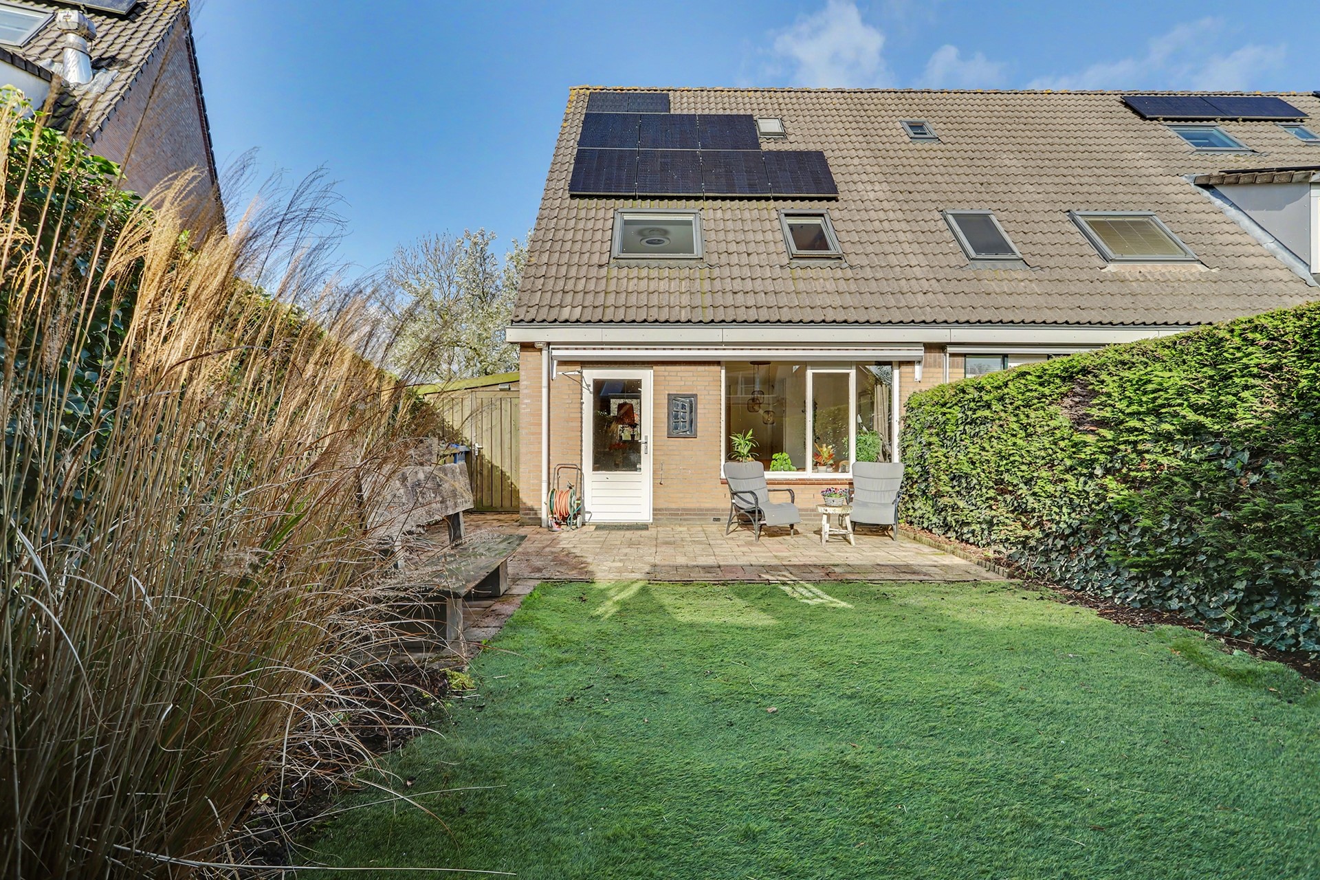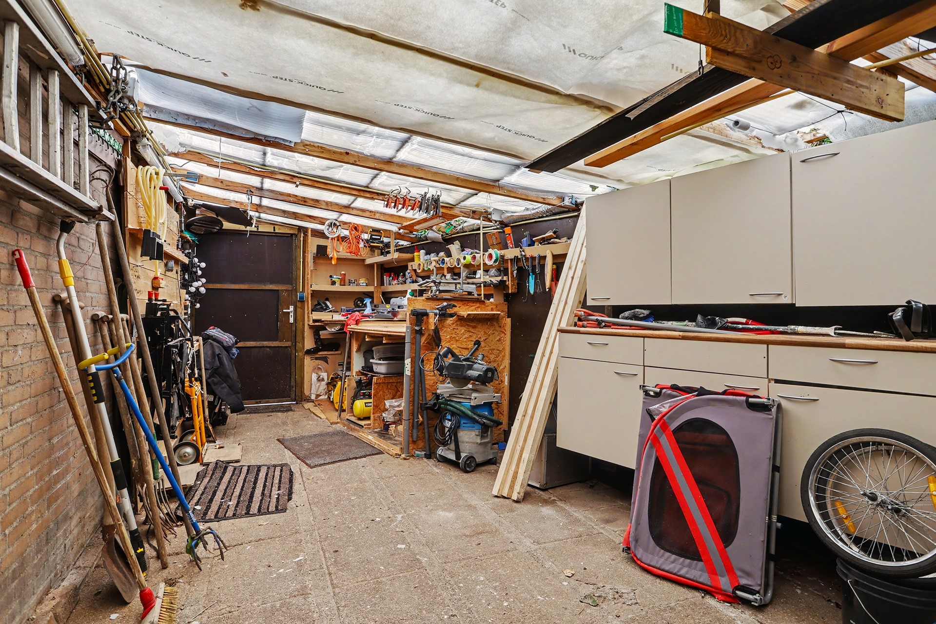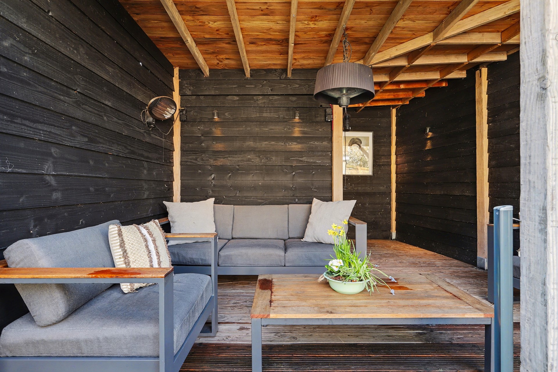 Ook buiten is het genieten. De overkapping in de achtertuin nodigt uit tot lange, gezellige avonden. Dankzij de beschutte ligging kun je hier vrijwel het hele jaar comfortabel zitten. De kleine schuur is netjes weggewerkt onder de overkapping en direct naast de woning bevindt zich een ruime hobbyschuur – ideaal voor fietsen, gereedschap en opslag.