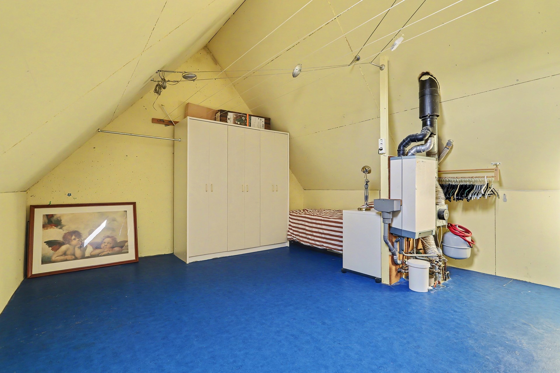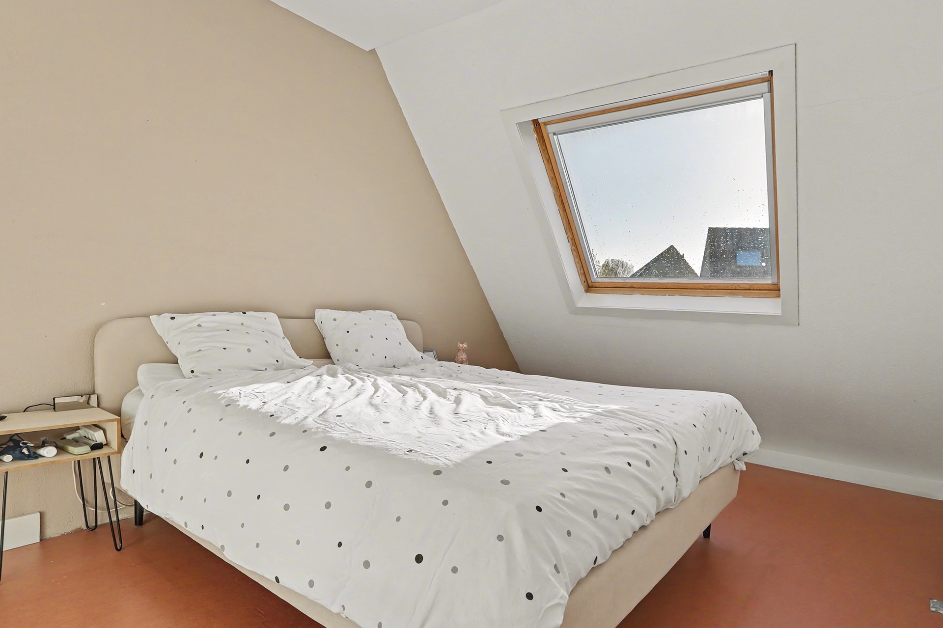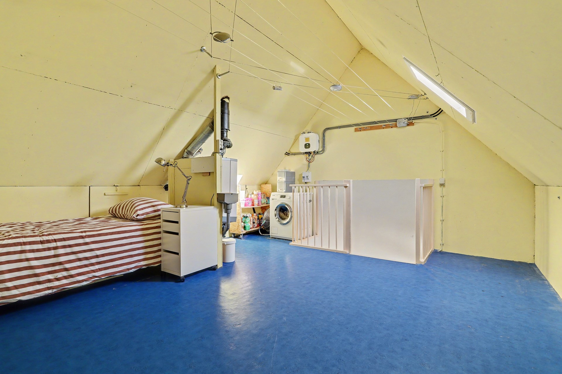 Open ruimte/slaapkamer van ca 18m², voorzien van wasmachine aansluiting en dakraam.