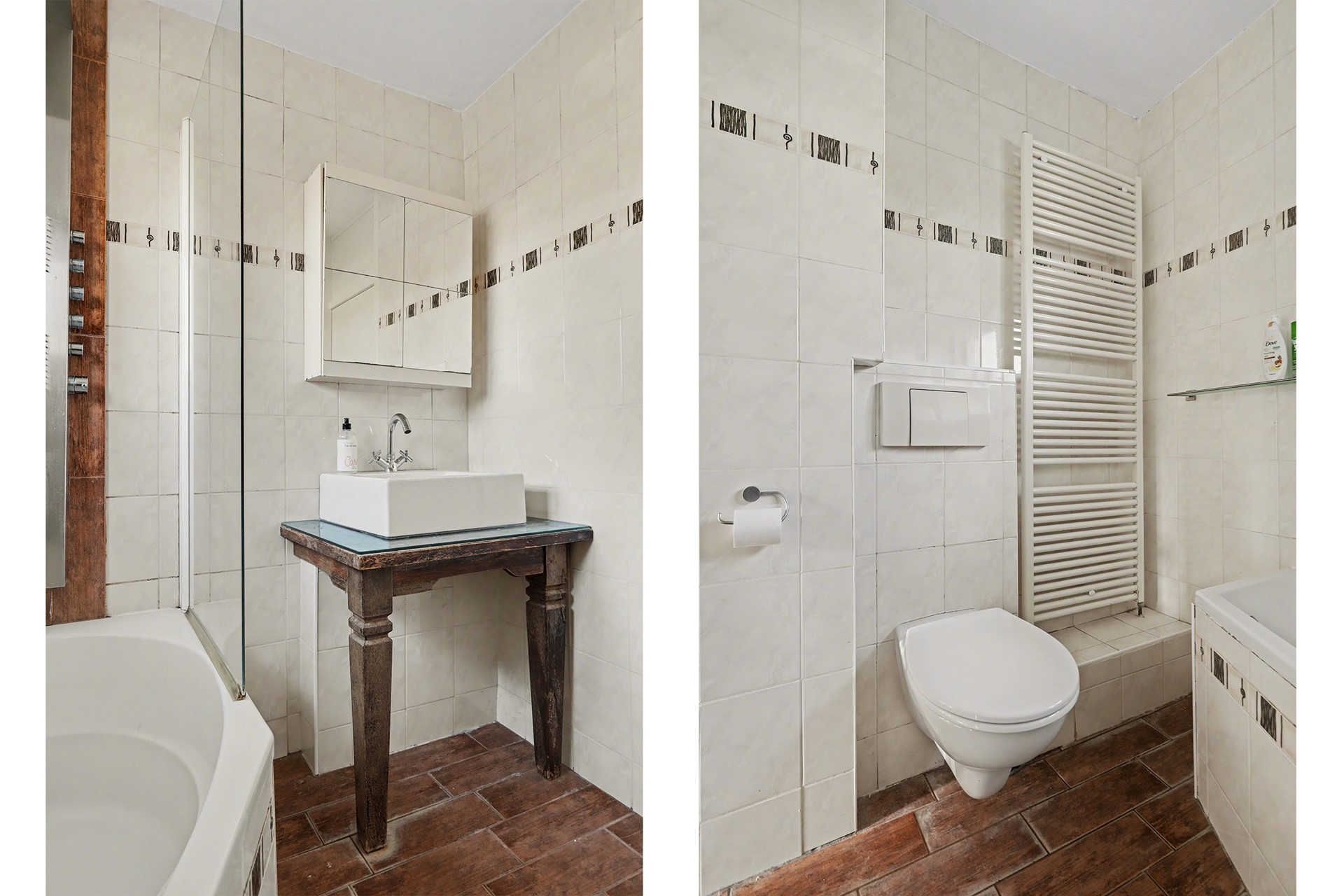 - De badkamer is voorzien van douche/ligbad, hangend toilet en wastafelmeubel