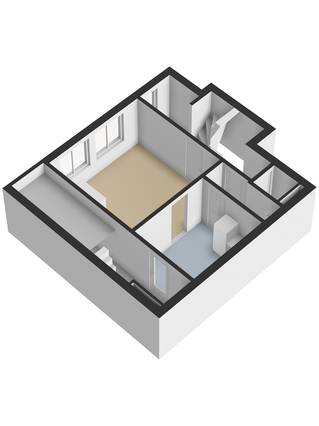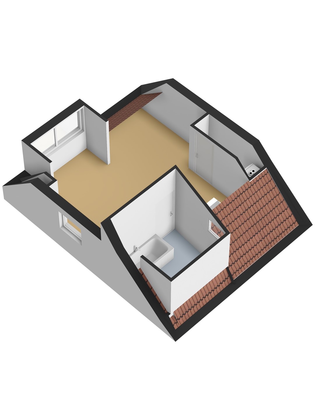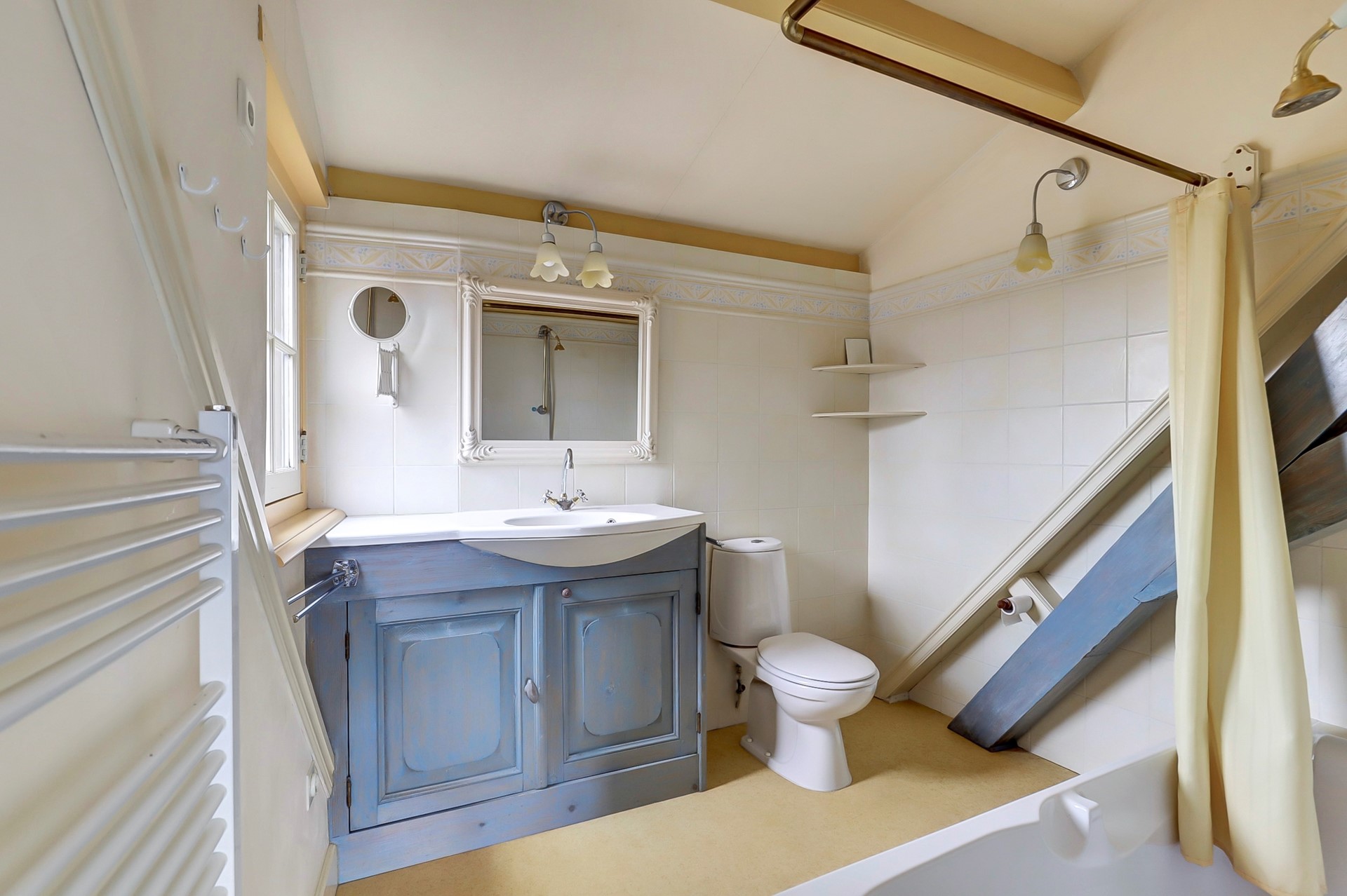 Slaapkamer met dakkapel aan de voorzijde en zijraam. Berging met opstelling Hr combi-ketel, bouwjaar 2018. Badkamer met wastafelmeubel, toilet en ligbad. Tevens is er bergruimte naast de wenteltrap.
