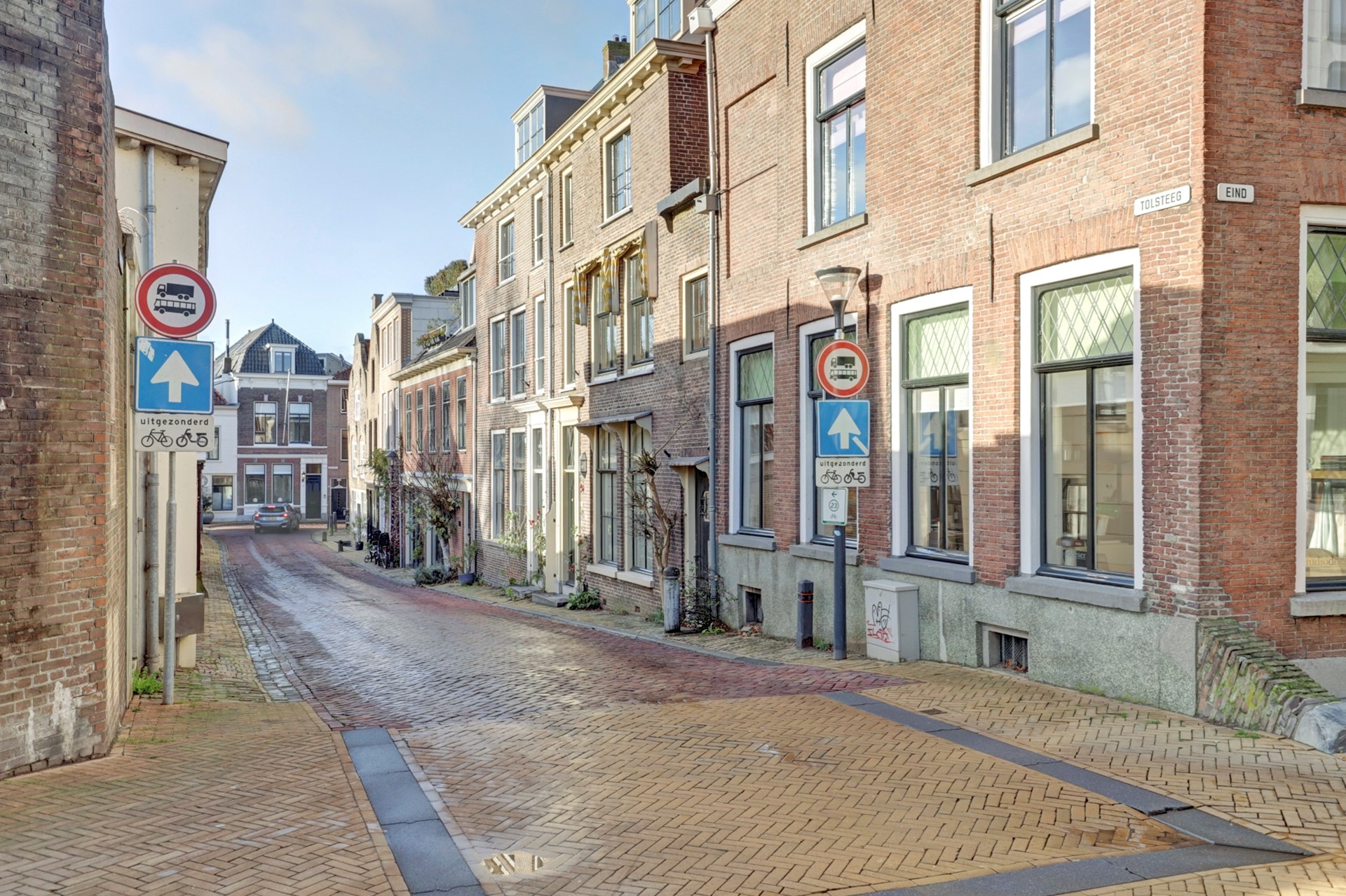 De Tolsteeg is gelegen in de historische binnenstad van Gorinchem, onderdeel van het beschermd stadsgezicht. Dankzij het eenrichtingsverkeer woon je hier opvallend rustig, terwijl alle voorzieningen – van winkels, restaurants en cafés tot het station, supermarkten en de stadshaven – op loopafstand liggen. Bovendien ligt Buiten de Waterpoort, met strandjes en recreatiemogelijkheden aan de rivier, op steenworpafstand van de woning. Ook uitvalswegen zijn binnen enkele minuten bereikbaar.